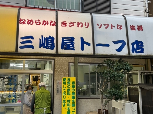 ご夫婦と娘さんとで経営されている三嶋屋さんは、ご主人をはじめ、とってもアットフォーム!御年80歳にはとてもみえず、ご主人は4時、娘さんは5時、奥様は6時に起床するとか。店頭販売の他に、今年1月までは、卸もやっていたそうです。いつまでもお元気で、体にいいお豆腐を作ってほしいですね。