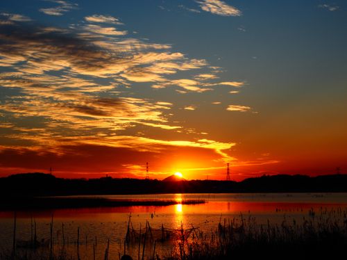 そして花畑側からでは手賀沼と同じように季節・時間によって太陽の光が入る位置が変わります。