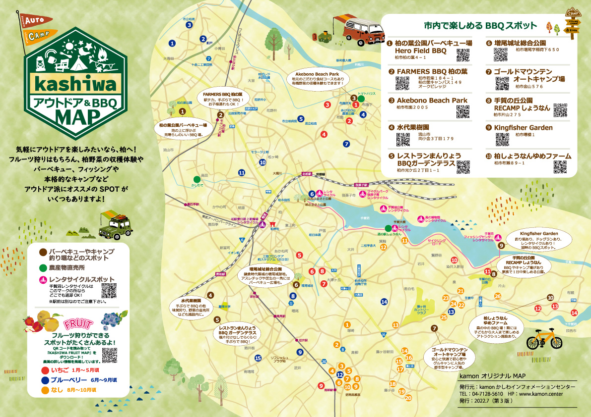 柏のまち歩き&まちめぐりは、コレにおまかせ!グルメやアウトドア、お花見スポットなど、シーンに合わせてご利用ください。併せて、駐車場やwifiスポットなど病院やお役立ちスポットも見やすいMAPにまとめました。ぜひ、ご活用ください。