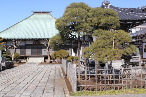 慶長山と号する日蓮宗のお寺です。『土村誌』によれば、慶長7年(1602)の創立と伝えられ、山号の由来となっています。かつては、五重塔などたくさんの文化財で知られる中山法華経寺の末寺で、本尊は釈迦如来、本行院日元によって開かれました。美しい白壁越に庭園の樹木が映え、素敵な散策路が続きます。
