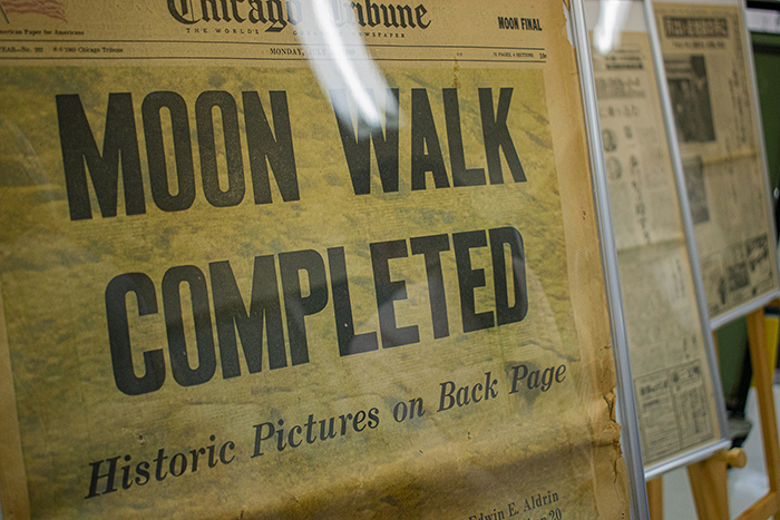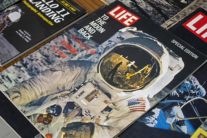 アポロ計画の当時の新聞記事や本などもたくさん、歴史を自分の目で見て、自分の手で触るチャンスです。